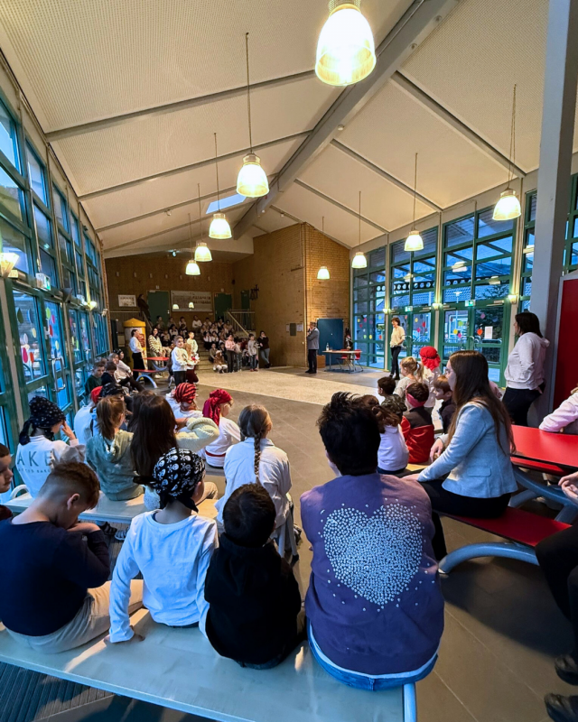 Bevor sich die Schulleiterin Frau Rinsche, die OGS-Leitung Frau Stöver und Bürgermeister Dr. Leon zu einem intensiven Austausch über die Zukunft der Schule zurückzogen, verabschiedeten sich die Kinder mit einem närrischen Karnevalstanz.