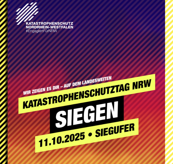 Dieses Jahr geht es am Samstag, dem 11. Oktober, ans Siegener Siegufer. Hier treffen Sie die Ehrenamtlichen, die für Sie und uns alle 24/7/365 im Einsatz sind. Hier werden Sie auf Wetterextreme vorbereitet – Seien Sie dabei!