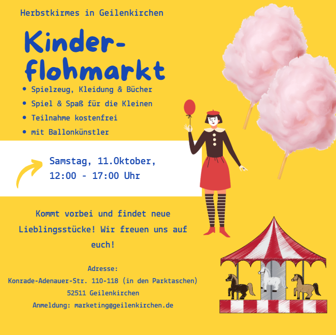 Am Samstag, 11. Oktober 2025 von 12:00 bis 17:00 Uhr verwandelt sich die Geilenkirchener Innenstadt wieder in ein buntes Flohmarktparadies für Kinder und Familien.
