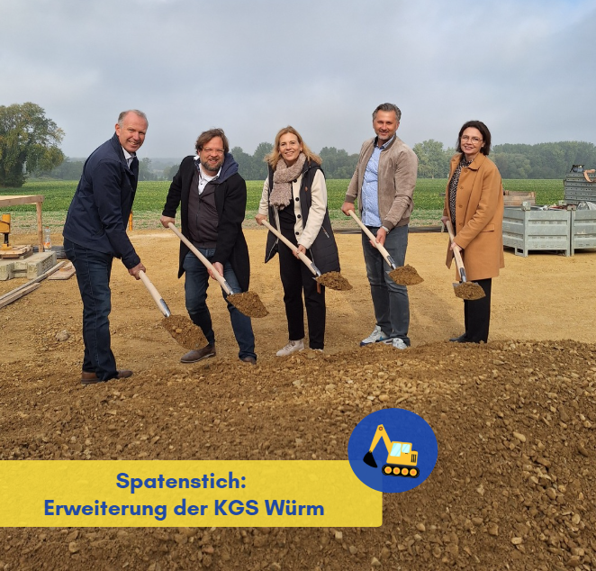 Mit dem Spatenstich am Mittwoch, dem 1. Oktober 2025, begann offiziell der Erweiterungsbau der Katholischen Grundschule (KGS) Würm. Gäste aus Politik, Verwaltung, Planung und Bau feierten gemeinsam mit der Stadt Geilenkirchen den Projektauftakt.