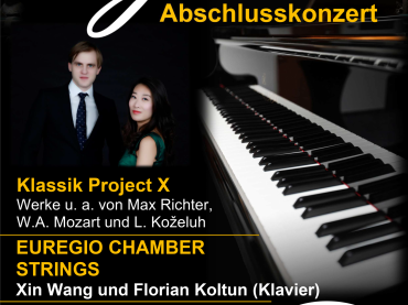 Der 14. Klaviersommer setzt mit seiner musikalischen Zugabe am Sonntag, 30. November um 17:00 Uhr in der Aula der Städt. Realschule Geilenkirchen den fulminanten Abschluss des Festivalprogramms. Mit „Klassik Project X“ lassen Musiker des Euregio Chamber Orchestra zusammen mit Xin Wang und Florian Koltun am Klavier die musikalischen Grenzen verschmelzen und entdecken zusammen mit dem Publikum neue musikalische Horizonte.
